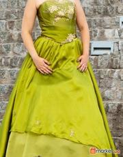 Продам платье -пачка .Оливкового цвета , можно сказать даже болотного!На солнце очень переливается .Коросет сдельный с юбкой на завязочках, без шлеек! Носила ровно 4 часа )в отличном состояние.