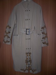 Продам пальто демисезонное на подкладке. Вышивка ручной работы. Рукав летучая мышь. Воротник стойка. Длина 108см. Длина рукава от плеча 63см. Размер 46-48..