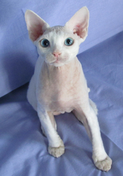 Питомник продает котенка шоу - класса породы девон-рекс. Пол - мальчик, цвет - белый, с голубыми глазами. Дата рождения - 11 мая, воспитан, приучен к лотку и когтеточке, очень ласковый и послушный.