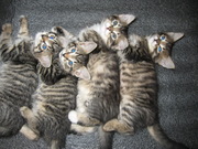 Подарю котенка. Четыре маленьких, пушистых, игривых тигренка ищут хозяев :) Котёнки здоровы, веселы, кушают всё, к лотку приучены, блох/глистов нет. Родились 21 сентября.
