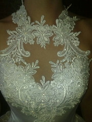 Платье было одето ТОЛЬКО для фотосессии в Египте. Размер 38-42 (объем 82-88 в груди). У меня рост 172, я была босиком. Платье в идеальном состоянии (не венчано и не одевалось в ЗАГС).