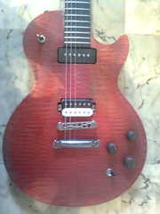 Гриф достаточно толстый и удобный (ну это на любителя). Датчики: бриджевый барстбакер 3, нэковый П-90. Гитара имеет полости в корпусе и килсвич. Полностью характеристики не перечисляю, их в интернете и так навалом. Само сабой продаю с жестким кейсом черного цвета (на кейсе один замочек подгулял).