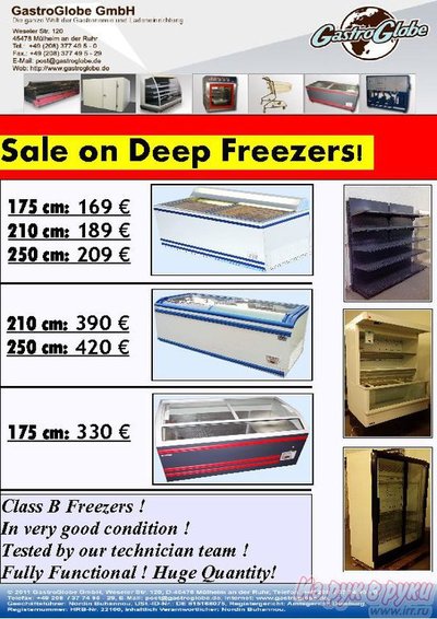 Холодильные и морозильные лари из Германии. В отличном состоянии. Любые марки и модели: АНТ Salzburg:1,75m;2,10m;2,50m AHT Berlin:1,75m;2,10m;2,50m AHT Paris:1,85m;2,10m;2,50m Linde Grandor! Цены доступные! *минимальная закупка 20-30 штук. |