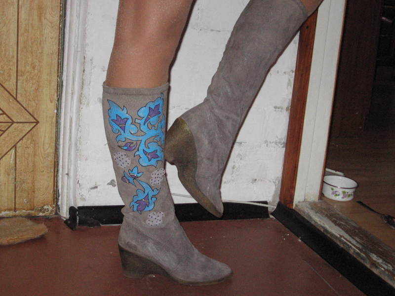 сапоги осенние замш р 37 ручная роспись - Женская обувь