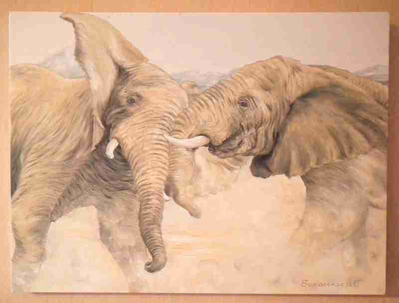 Продам картину маслом "Битва слонов" - Картины, рисунки