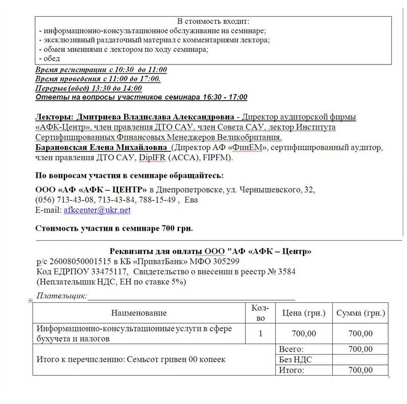 Бухгалтерские семинары в Днепропетровске, курсы для бухгалтеров.