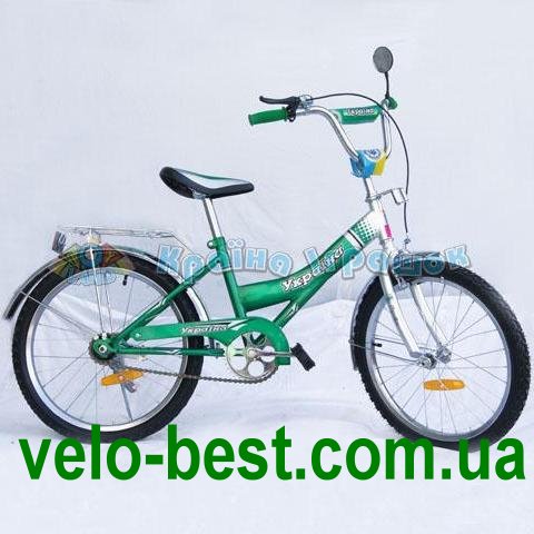 Предлагаем велосипед Украина - 20 дюймовый двухколесный детский велосипед Украина (Зеленый) 102008 БЕЗ боковых дополнительных поддерживающих колесиков;