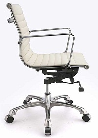 Простая с виду конструкция, удивительно комфортна, благодаря покрытию из кожзама и хромированным подлокотникам, облегченной спинке средней высоты с прогибом в области поясницы, а крестовина - опора имеет хромированное покрытие и обрезиненные колеса, размер кресла 62*63*93. |