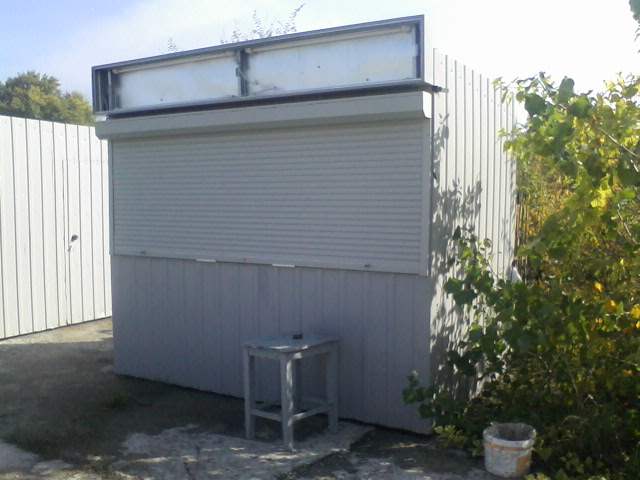 Каркас изготовлен из металла. Киоск утеплен, снаружи обшит профнастилом, внутри обшит пластиком. Установлено металлопластиковое окно, пол покрыт линолеумом, установлены светильники |