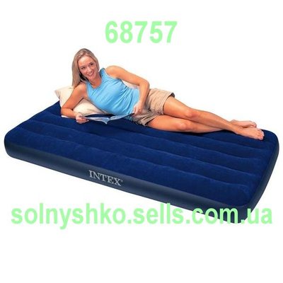Продаем одноместный надувной велюровый матрас 68757, ТМ Intex Royal (Интекс) с шириной 99 см - это комфортное спальное место, Серия матрасов Royal с продольными перегородками предназначена для организации спальных мест дома и отдыха на природе, Верхняя часть матраса покрыта искусственным велюром, нижняя гладкая, легко моется и чистится от загрязнений, Быстрая очистка матраса особенно важна при эксплуатации надувного матраса на природе, Материал ПВХ, из которого изготовлены надувные матрасы, не поглощает влагу и быстро сушится, Специальный клапан позволяет накачивать надувной матрас при помощи электрических и механических насосов, Плюшевая плотная флокированная поверхность делает его удобной для приятного сна и предотвращает соскальзывание постельных принадлежностей, Насос в комплект не входит, Размер: 99х191х22 см Веc: 2, 8 кг Артикул 68757 Доставка по всей Украине: Киев, Харьков, Днепропетровск, Донецк, Львов, Луганск, Полтава, Крым, Черкассы, Чернигов, Ровно, Винница, Житомир, Сумы, Луцк, Одесса, Николаев, Кривой Рог, Кировоград, Тернополь, Ивано-Франковск, Хмельницкий, Запорожье, Черновцы, Херсон, Мариуполь Весь ассортимент товара с окончательными ценами можно посмотреть на сайте интернет магазина Солнышко