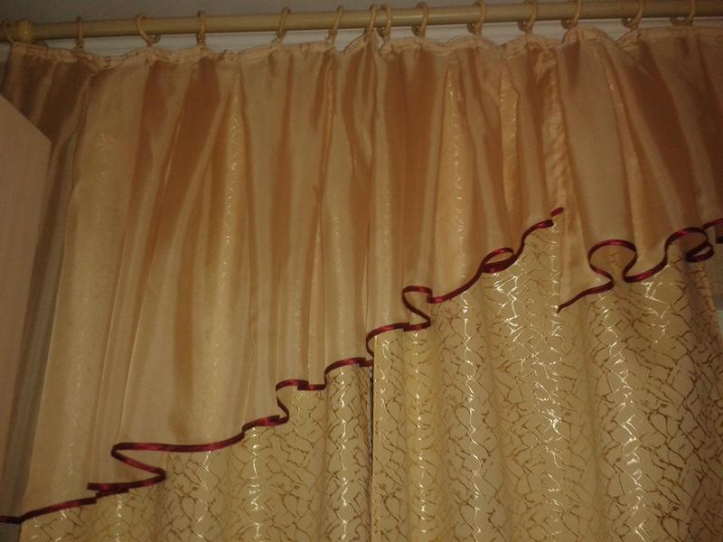 Продам комплект: Желтую штору (2 шт.), состояние хорошее. Высота 2,43м, ширина 0,72 (в растянутом положении, без складок). Ширина со складками 0,52м. ткань не мнется. Ламбрекен: Высота 1,4м. |