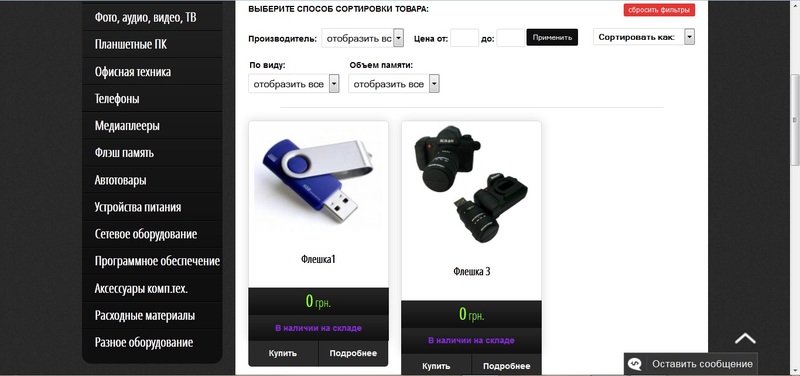 Сайт настроен на продажу бытовой, цифровой и другой техники, но его возможно переделать под любой другой магазин.