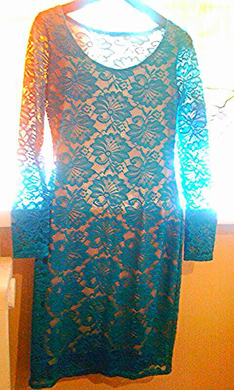 Новое гипюровое платье,бирюзового цвета,короткое,стрейчевое,размер S. |
