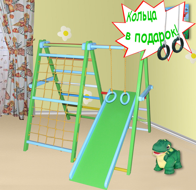 Детский спортивно-игровой комплекс из бука Динозаврик цветной - Детский спорт