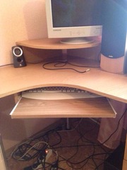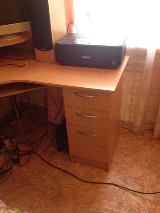 Продам угловой компьютерный стол,с ящичками и полкой под монитор,отличное состояние,продаю за ненадобностью... Размеры:высота 72см, Промежуток между столешницей и полкой под монитор 15см, Длина одной сталешницы 125см,длина другой 135см.В продаже есть письменный стол,смотрите мои объявления)))Возможна доставка,оговаривается отдельно.Есть так же киевстар-0688832171 |