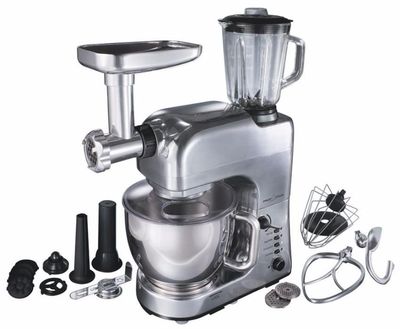 Комплектация: Насадка венчик, Насадка для колбасок, Насадка для Кеббе, Насадка для макаронных изделий, Насадка для печенья, Для замешивания теста, Насадка мясорубка, Насадка блендер