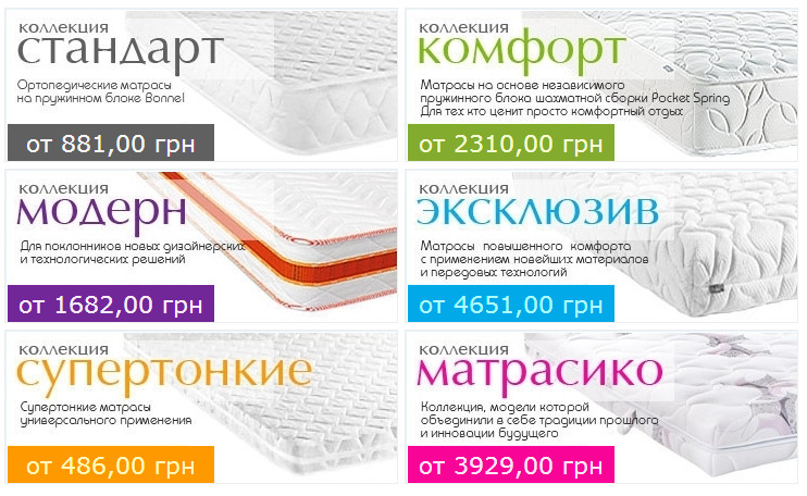 Интернет-магазин MatrasM - представитель заводов производителей гарантируем высокое брендовое качество товаров, предоставляем все сертификаты на продукцию, продаём по самым низким ценам, предлагаем акционные подарки, помогаем подобрать наиболее подходящий для Вас матрас и обеспечим доставку. Если по каким либо причинам выбранная модель матраса Вас не удовлетворила, мы обеспечим возврат или обмен товара согласно закона Украины о защите прав потребителя. Для Вас мы отобрали самые лучшие коллекции матрасов от отечественных брендов с мировым именем. Независимо от Ваших пожеланий антиалергенные, долговечные, экологически чистые, жесткие или мягкие у нас Вы найдёте матрас который Вам нужен. Подробнее на matrasm.com.ua