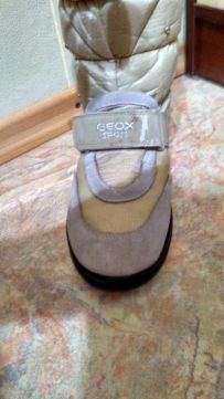 Сапоги женские фирмы Geox, 37 размер, искусственный мех, состояние хорошее. На фото 2 и 3 видны небольшие потёртости на ремешках- липучках. |